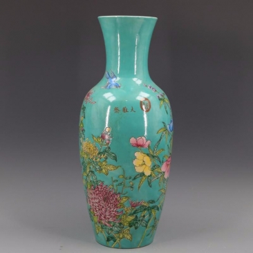 绿地粉彩菊花花鸟纹观音瓶 ¥1,200 出售: 0 件