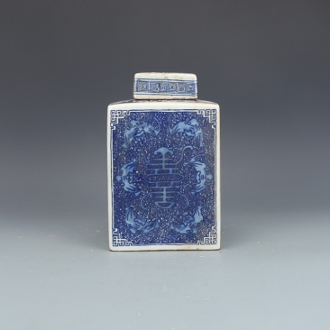 青花如意纹茶叶罐,如图好品