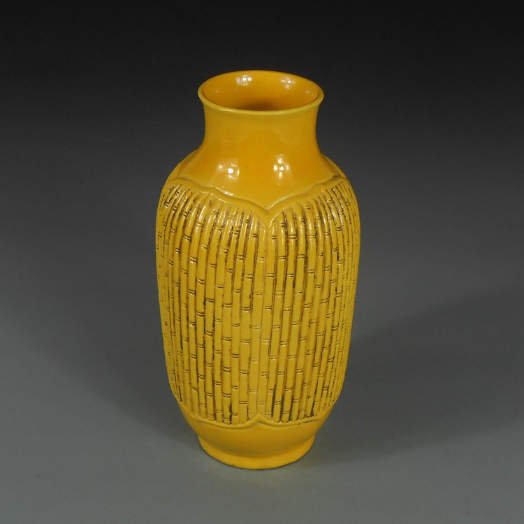 王炳荣黄釉浮雕竹节东瓜瓶,