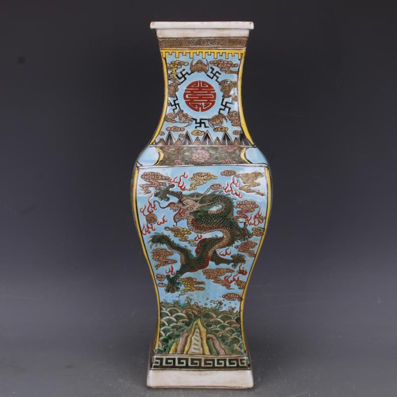 粉彩龙凤纹四方瓶